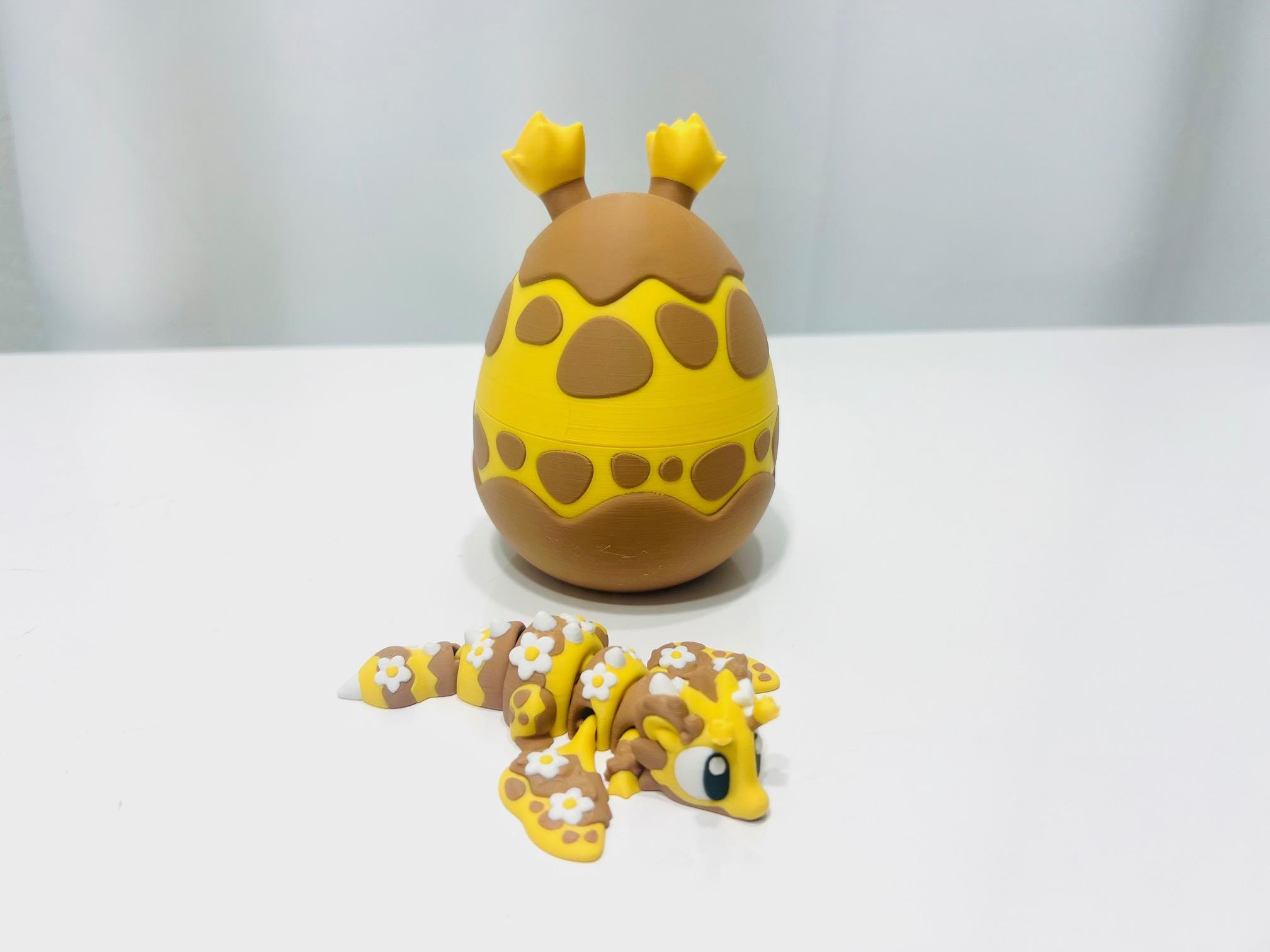 3D Printed Flexi Bee Mini Dragon + Egg Figurine Decor, Fidget Toy